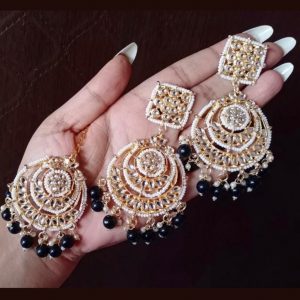 Gold Plated Kundan & Beads Earrings with Tikka