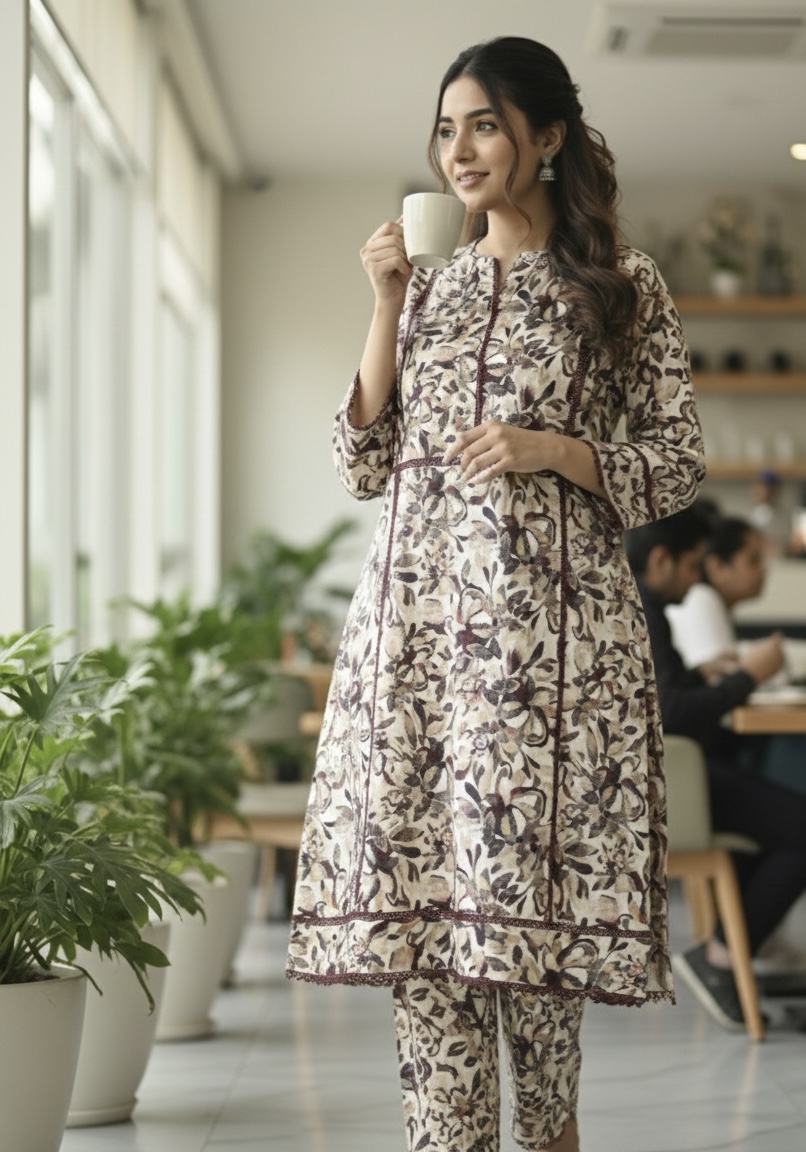 A-Line Printed Khaddar Shirt