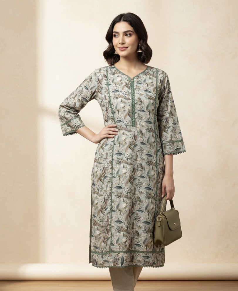 Khaddar Printed Kurt with Lace on Neck Arm and on Damen