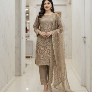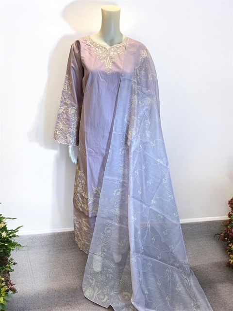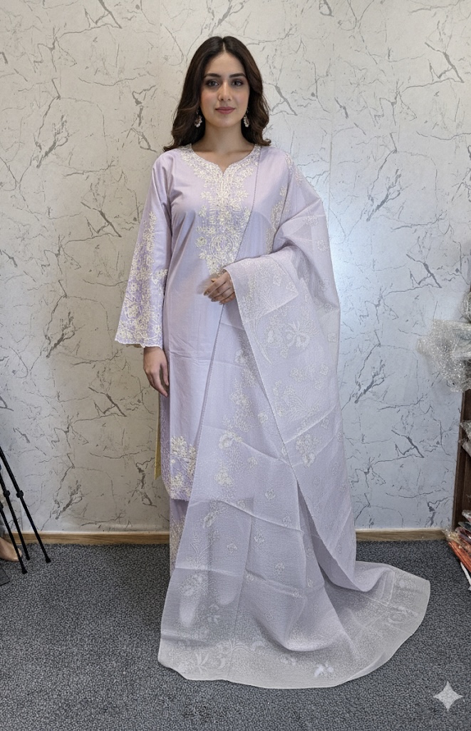 Cambric Cotton 3Pcs Embroidered Suit
