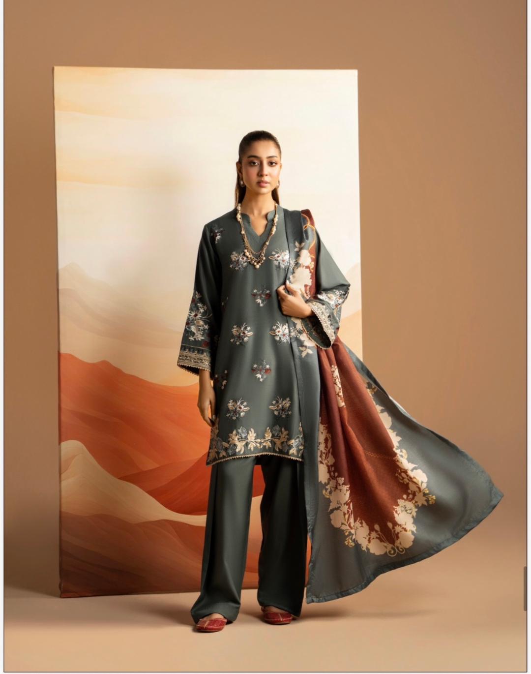 RaniyaH 3Pcs Embroidered Dhanak Suit