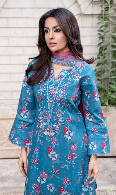 Digital Printed & Embroidered Slub Khaddar Shirt